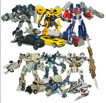 Набор из 6 трансформеров позволит разыграть сцены реальных боев между автоботами и десептиконами прямо у вас дома. Оба предводителя неприятельских лагерей Оптимус и Мегатрон в сопровождении своих соратников. Со стороны автоботов выступят Бамблби и Айронхайд "Железная шкура", а из десептиконов Редспайдер подкрепит Мегатрона.