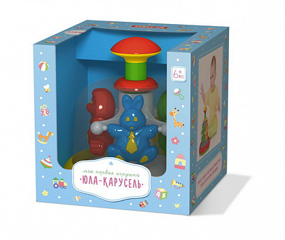 Наша юла заводится легким нажатием на рукоятку, что доступно даже младенцам. От прикосновений малыша запускается карусель под прозрачным куполом. Малыш может наблюдать за движением фигурок, влиять на их скорость и слушать звуки.
