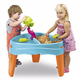 Игровой стол Остров для игр с песком и с водой. У стола три устойчивые ножки и крышка для защиты от непогоды. Стол удобно хранить сложив ножки внутрь стола и закрыв крышкой. Материал: пластмасса, устойчивая к воздействию яркого солнца и перепадов температур. Размер: 70*70*46 см. Вес 6,2 кг. Возраст от 2 лет.